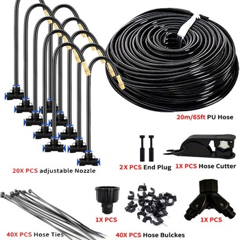 15M Vườn Brass Phun Sương Hệ Thống Làm Mát Thủy Lợi Tưới Nước 1/4 ''Atomizer Vòi Phun 4/7Mm Hose Cho Ngoài Trời Nhà Kính Nồi